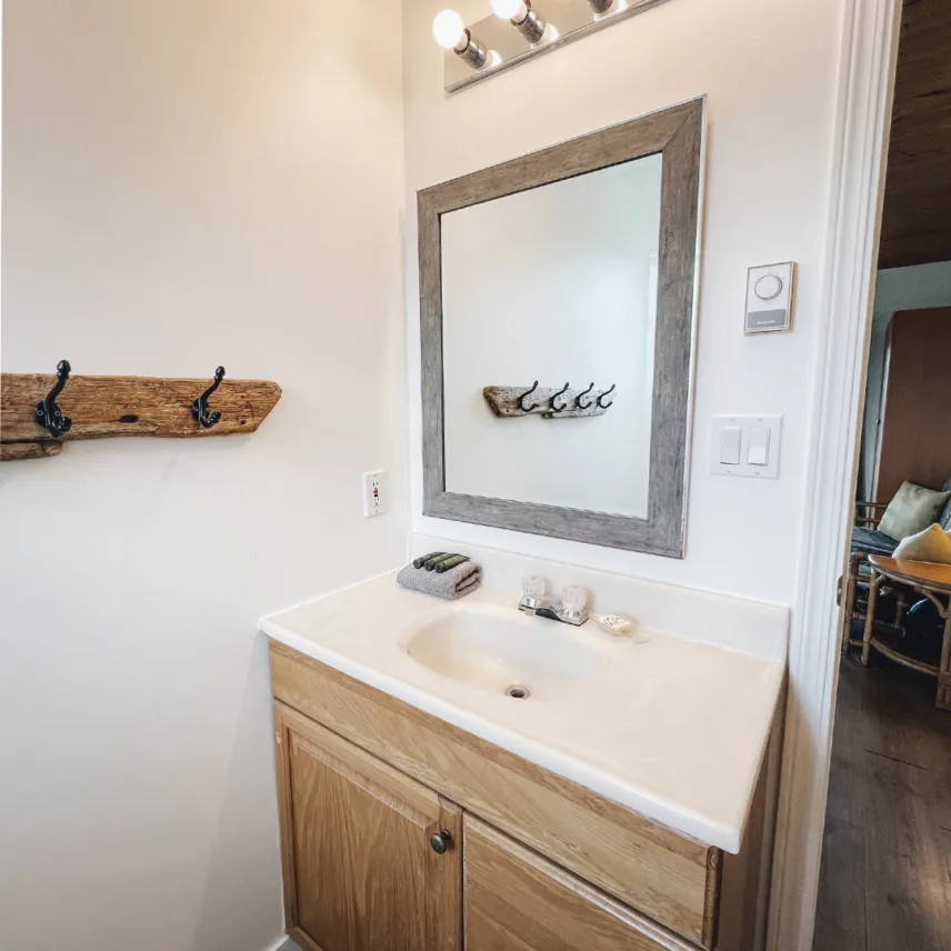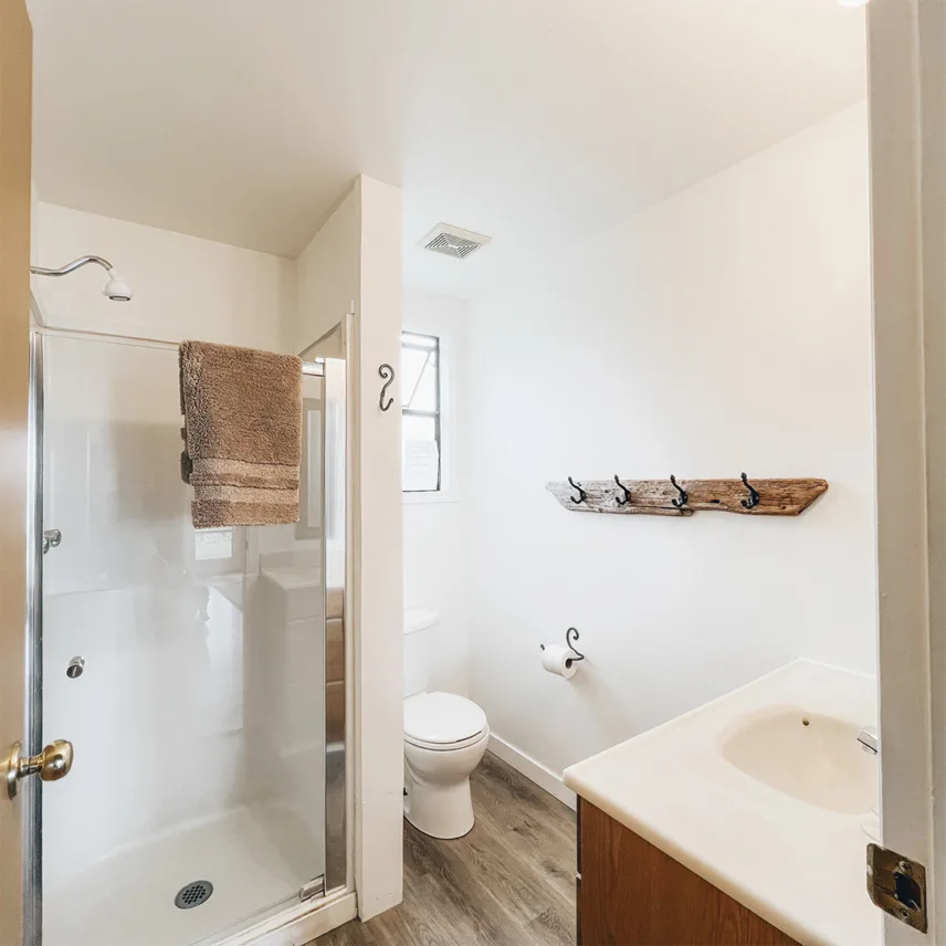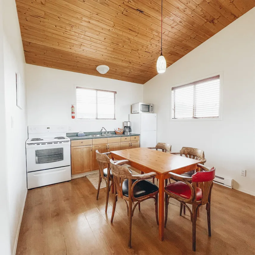 True to its name, Regal Suite is our largest cottage on the property and features two bedrooms, a spacious living area, an open-concept kitchen and dining area, a wood-burning fireplace and a lovely waterfront deck. The primary bedroom boasts spectacular ocean views from the queen bed while the secondary bedroom houses a set of bunk beds (1 double, 1 twin) and a second twin. With extra square footage, Regal Suite is perfect for a large family or two couples.