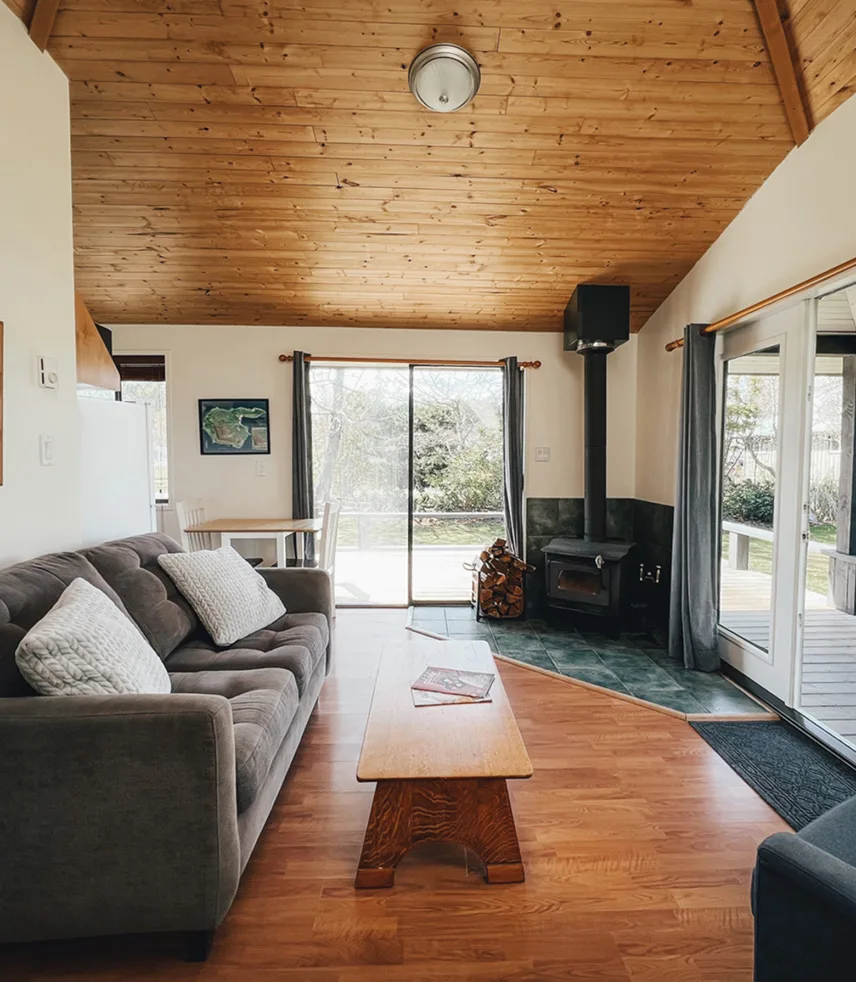 Named after Sea Breeze’s most loyal and long-term guests, Watt’s Inn features a queen bed in the primary bedroom, a set of bunk beds (two twins) and a double bed in the secondary bedroom, a full-kitchen, a wood-burning fireplace and a large wrap-around private patio. Boasting the sunniest location on the property, this two-bedroom is perfect for soaking up the sunshine and gazing out at the lovely garden. With a double bed in the secondary bedroom, this cabin is ideal for two couples traveling together or larger families.