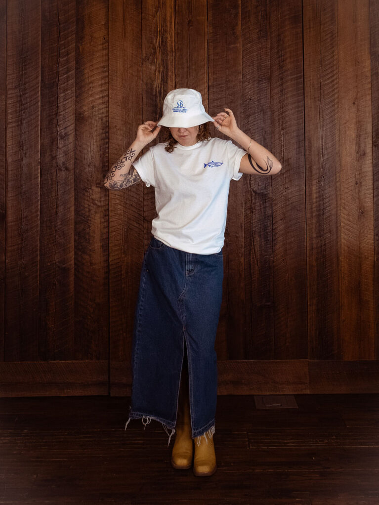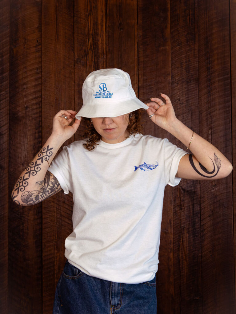 A crisp cloud white bucket hat featuring the original Sea Breeze Lodge logo. A timeless nod to our roots and a must-have for sunny island days. Perfect for beach walks, boat rides, garden naps, and all the in-between moments that make summer at Sea Breeze what it is.