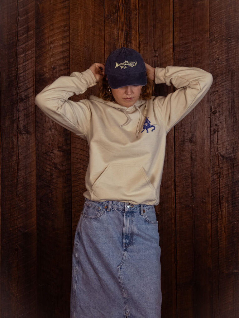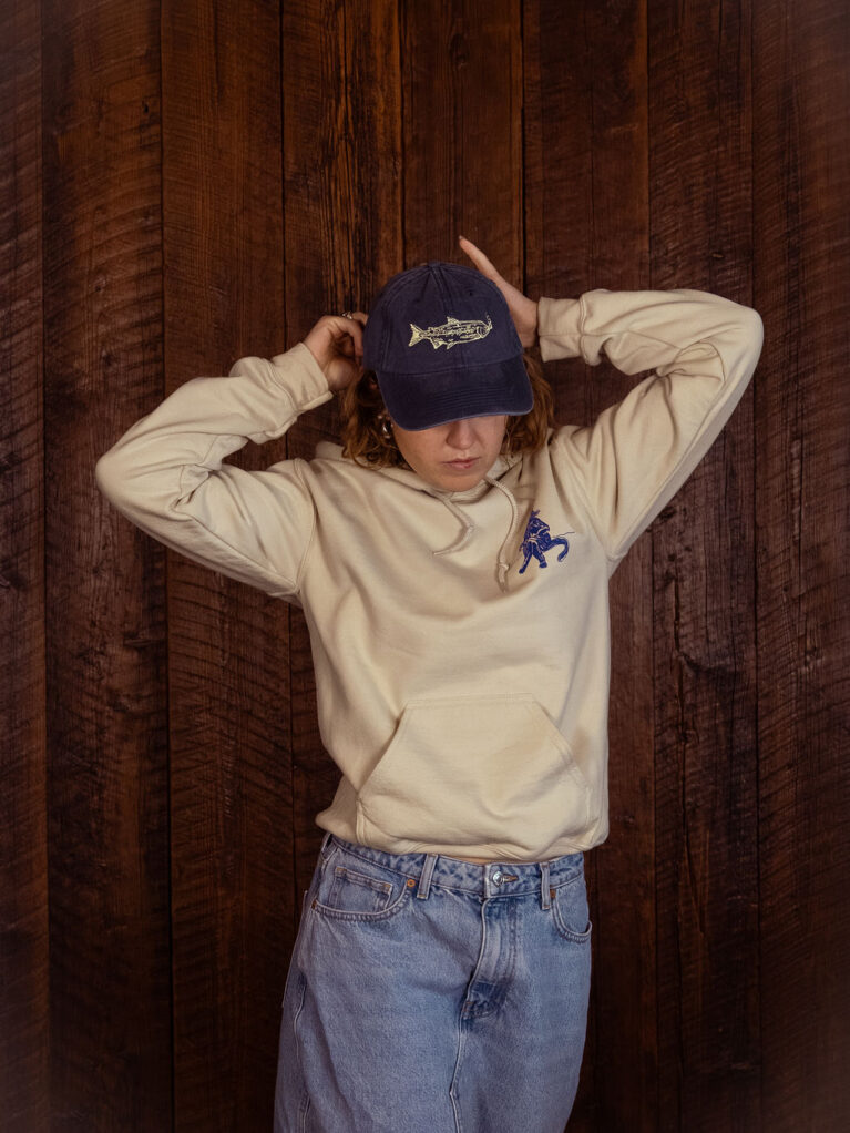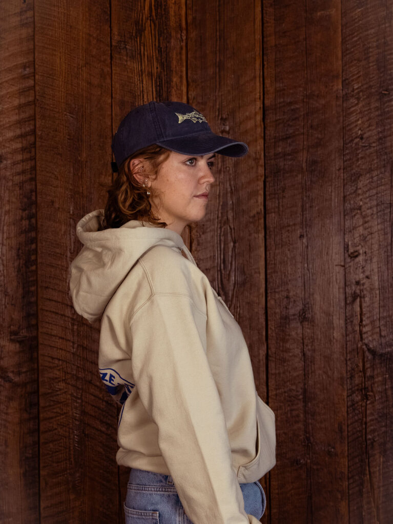 This playful graphic is inspired by the late Grandpa Brian, the patriarch behind the Sea Breeze legacy, known for his wood-smoked salmon and fondness for a cheeky cigar. Embroidered onto our vintage dad cap with light green detailing.